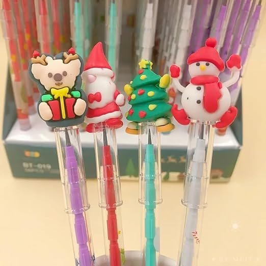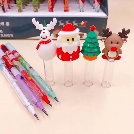DECORATIVE BUCKETS: Christmas Gifts |Christmas Gifts for Kids |Santa Claus Candy PENS |Reindeer bottle: Christmas Decorations :Christmas Gifts for Children,Santa Toys (christmas pencils pack of 4)