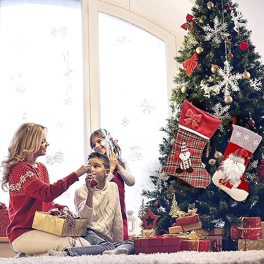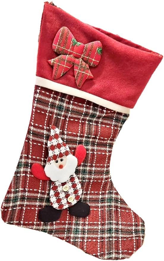 - CUTE CHRISTMAS PLAID DESIGN: Each Christmas stocking is with a super cute Christmas element, including elk, dogs, snowman, Santa, matching classic red and green Christmas theme color and classic check pattern, a set of exquisite and cute Christmas stockings, Christmas gifts for kids.