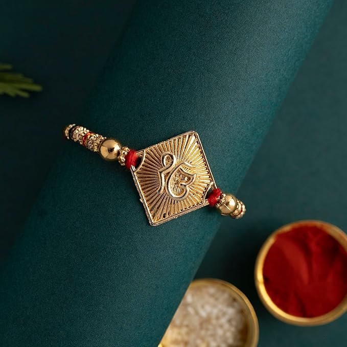 • MATERIAL : ANTIQUE METAL, PRODUCT AS SHOWN IN IMAGE. COLOR CAN BE RANDOM All These traditional mauli rakhi , kundan rakhi , pearl om rakhi brings joy and happiness to the festival. Material metal, Stone and kundan