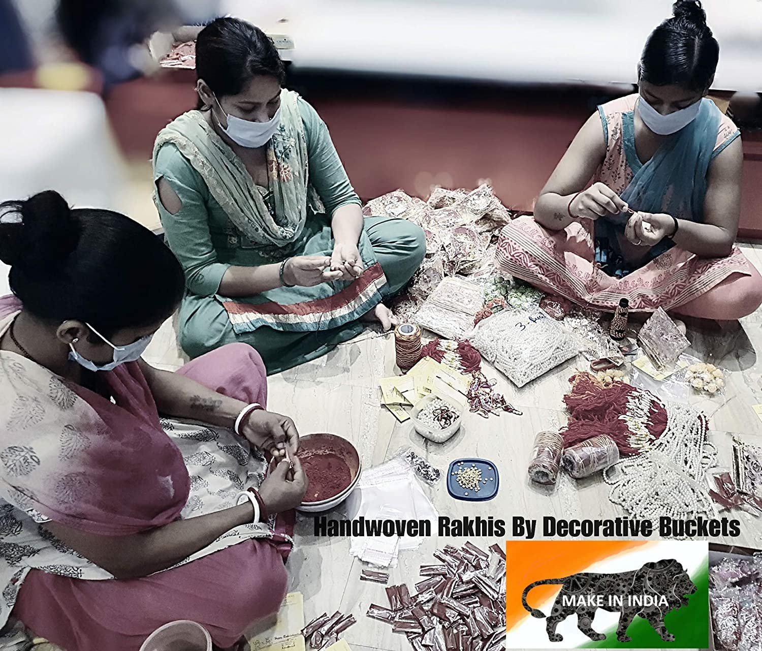 The entire Rakhi’s have been created by the selfhelp women group in rajasthan and are entirely handwoven.PS the color delivery will be random according to stock.