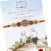 - PACKAGE CANTAINS : 1 RAKHI + 1 GREETING CARD + 1 ROLI PACKET +1 RICE PACKET .PS cushion shown in image is only to display not included in pack as rakhi comes in potli.