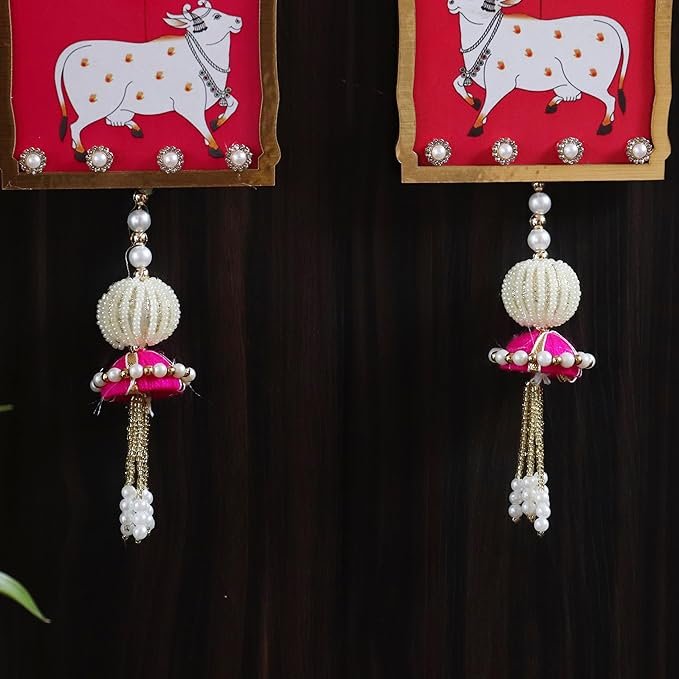 • Material: fabric, Mdf Wood & pearl : BANDHANWAAR: QUANTITY 1 String : SIZE : 40 inches | . Can easily be folded and stored. EXCLUSIVE DESIGN :Our Handmade Bandhanwar Rose and lotus garland, Peacock garland., morpankh bandhanwar, patola toran, comes in two fabric jute and patola and has an ornamental umbrella gold & pearl hanging drops at the end. Its gold color metal chain and accents lend it a lavish look.