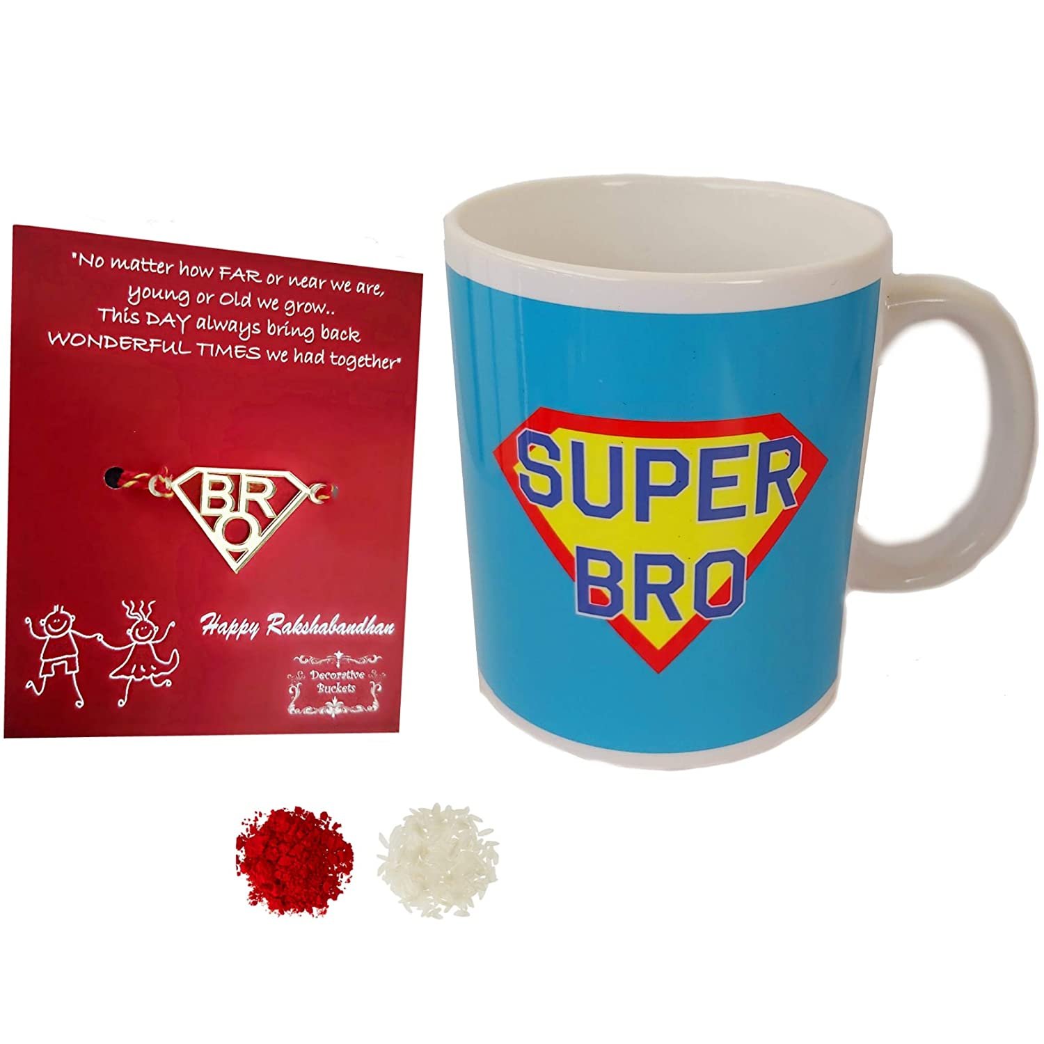 “Decorative Buckets rakhi gift for brother| rakhi gift for brother with rakhi |rakshabandhan gifts for brother | RAKHI GIFT COMBO 1 super bro Mug,1 rakhi ,1 card & roli chawal