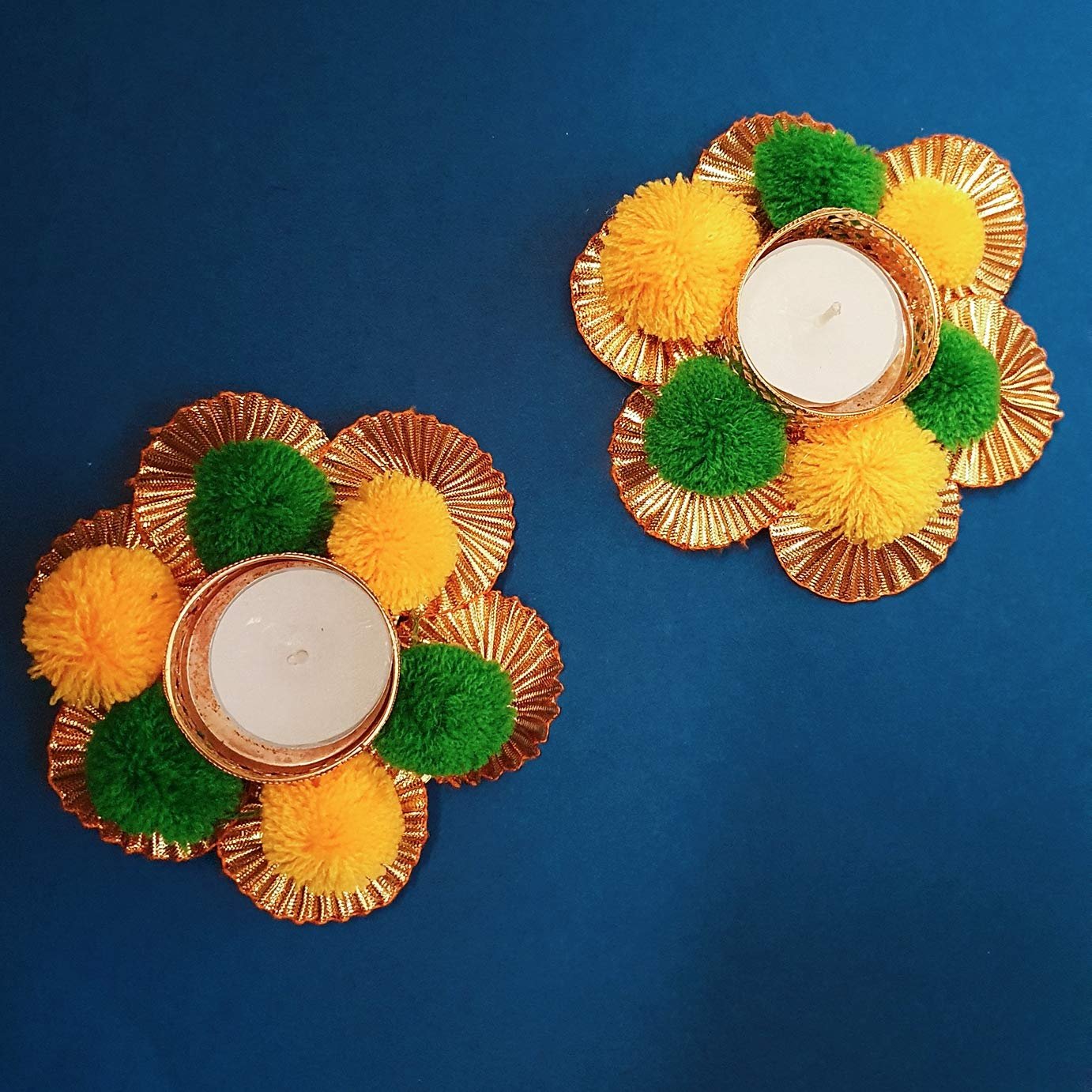Decorative Buckets handmade tea light holders| set of 2 pom pom RANGOLI candle holders| diwali decorations| FLOOR DECORATIONS|home decorations| pooja room decorations|Indian festival decorations| diwali gifts |ONAM DECORATION| PONGAL DECORATIONS| INDIAN WEDDING DECORATIONS diwali diyas | diwali lights