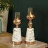 • Size: Large candle stand: 11.5cm bottom D x 7cm top D x 26cm H Small candle stand: 11.5cm bottom D x 7cm top D x 19.9cm H Removable glass top: 7.7cm D x 9.9cm H; Votive candles: 5cm D x 5.1cm H.