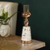 • Lustrous gold exterior – Votive candle holders – Removable glass top – Anti-skid foam base. Material: Metal, glass, and PVC